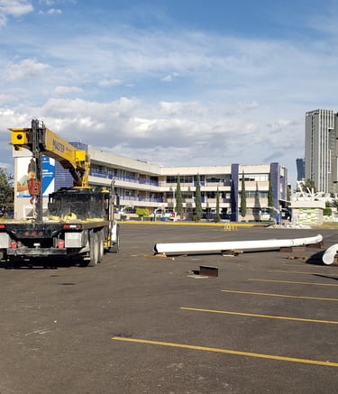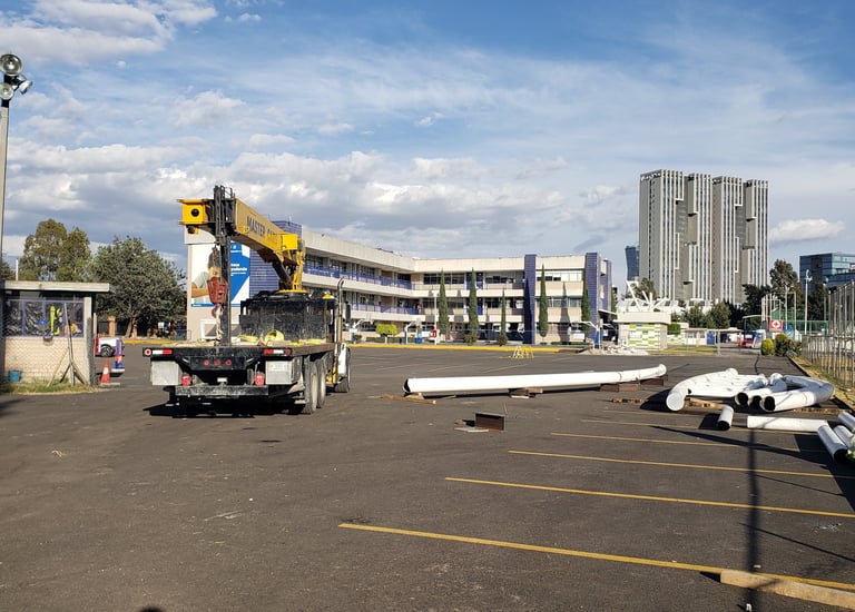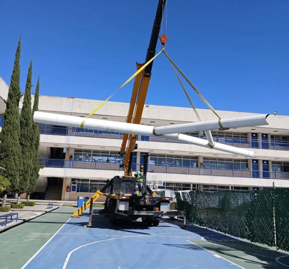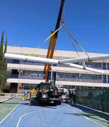 Realizamos el montaje de la estructura para pérgola en las instalaciones del Colegio Andes, asegurando una maniobra precisa y segura. Con nuestro equipo especializado y tecnología avanzada, garantizamos una instalación eficiente y de alta calidad.